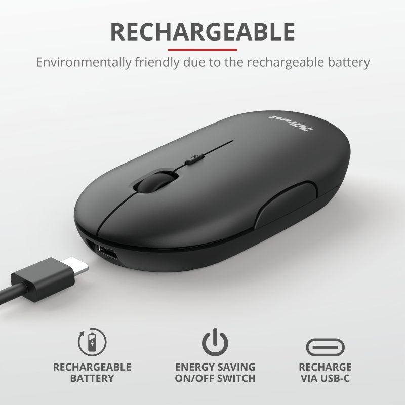 Мишка TRUST Puck Wireless & BT Rechargeable Mouse Black