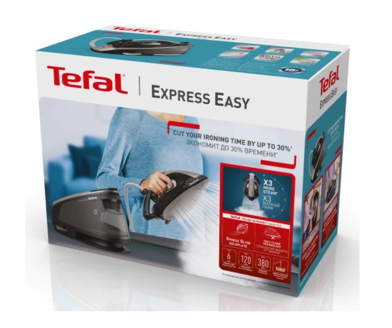Парогенератор Tefal SV6140E0, Express Easy, black, 2200W, non boiler, heat up 2min, manual setting, pump 6bars, shot 120g/min, steam boost 380g/min, Ceramic Express Gliding soleplate, removable water tank 1,7L, auto off, eco, lock system, Calc Clear tech