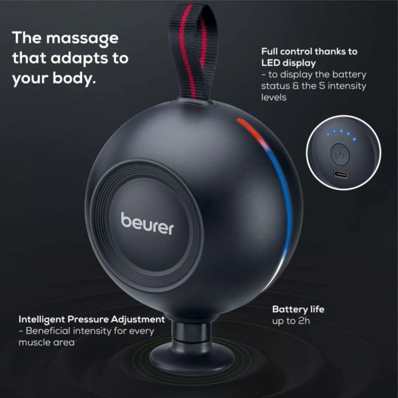 Масажор Beurer MG 101 SensorBoost, Integrated pressure sensor, Ergonomically shaped, 5 massage attachments, 5 intensity levels, Lithium-ion battery, black