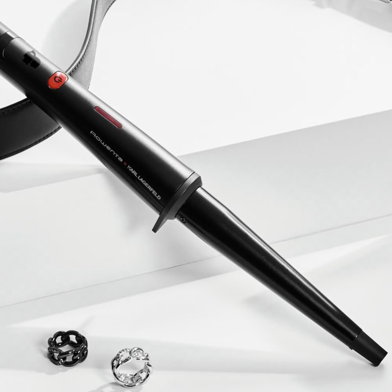 Маша за коса Rowenta x KARL LAGERFELD CF324LF0 – конусовидна конична маша за къдрене, регулируема 120-200 °C, Keratin & Glow покритие